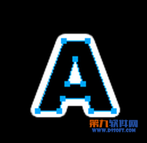 第一步:在Fireworks中新建文件,大小自定,在這裡我建的是(531*433)。背景為黑色,輸入字體A(字體為ARIAL BLACK),顏色為(白色),選中字體A,將字體轉換為路徑(CTRL+SHIFT+P)。充填:(空),描邊:大小(6),描邊顏色:(白色),描邊種類:(1素象柔化),邊緣為(0)。得到如下效果: