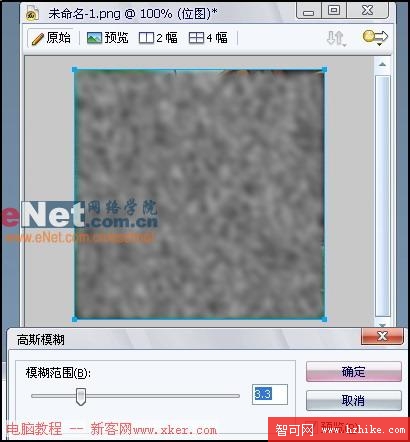 Step 5 -選擇“濾鏡”>“模糊”>“高斯模糊”,參數設置為:模糊范圍 = 3.3,效果如圖3所示。