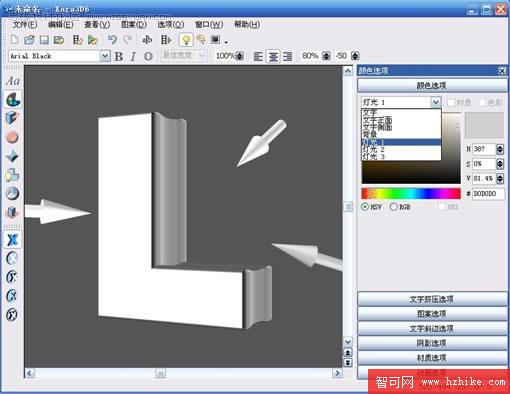 4.調整字體位置和光線角度,注意文字正面和側面色彩對比要大,不然後面上色扣出來就麻煩了。