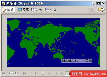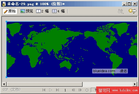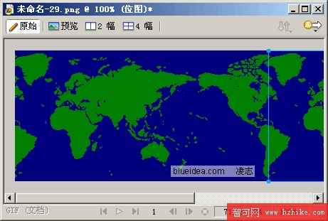 3、進入Fireworks,新建文件,粘貼。粘貼後利用裁剪工具將世界地圖部分裁剪下來,裁剪時一定要放大比例進行裁剪,精確一些。