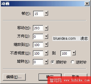 16、設置動畫的幀數,移動方向,還有移動距離。因為地圖素材要向右側移動(地球自西向東旋轉嘛),所以教程中填寫的數值是0。因為地圖素材被我們拼接成了兩張,旋轉一周也就是移動一整張地圖素材的寬度,或者說是縮放後的地圖素材的一半寬度,在步驟13中,我們記下了地圖素材在縮放後的寬度586PX,將此寬度除以2,得到結果293PX(大家要根據自己記下的寬度為主算其數值),將293數值填入移動距離項目中。