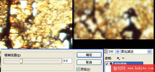 b.高斯模糊,目的是為了下面應用減淡等效果時不出現雜點