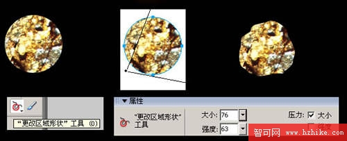 c.選擇[更改區域形狀工具],並根據實際情況調整大小和強度,將圖像變為不規則的隕石形狀。
