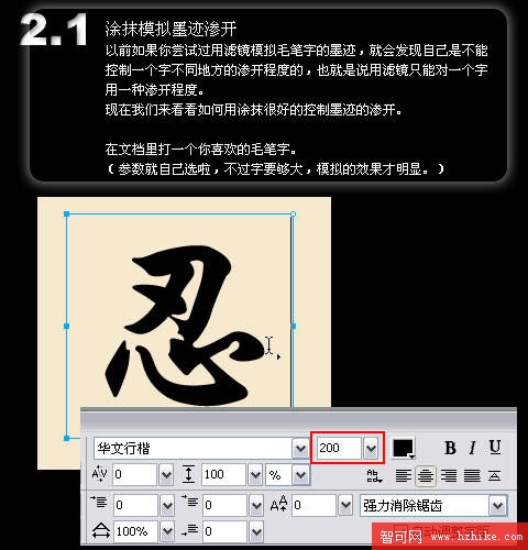 呵呵,我對毛筆字的筆劃和墨跡滲開之間的關系沒有什麼考究,塗得不太好。如果要修改太過滲開的塗抹,你可以從筆劃的外面往裡面推動鼠標,把顏色推回去。