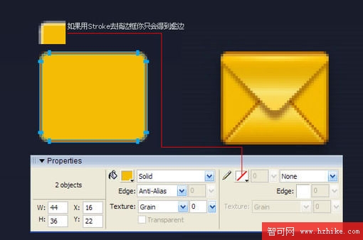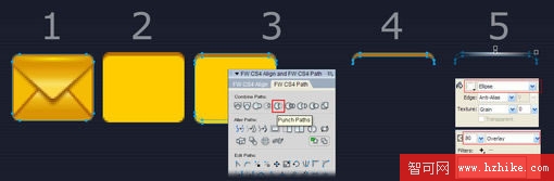 接下來為信封的上下三角形加單像素高光,因為之前已經反復講過路徑相減(Punch Path,您可以在Modify – Combine Paths菜單下找到它)的操作,這裡不再作說明,如下圖: