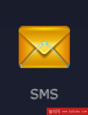 用白色箭頭選中途中所示那些節點,然後用鍵盤的方向鍵往下挪兩個像素,這樣使信封看起來長一點(因為這裡單個圖標不受整體風格約束)。