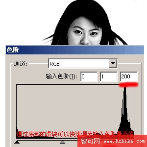 (5)利用色階濾鏡增強對比度,方法是利用底部的滑塊調節“輸入色階”的最高值;