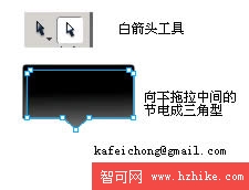 選擇白箭頭工具,向下拖拉中間的節點成三角形。
