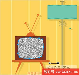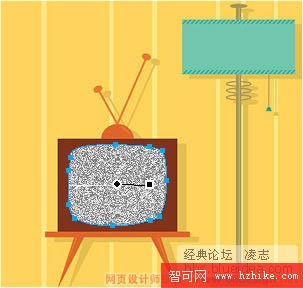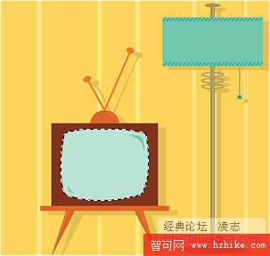 2、因為這幅圖片是位圖,我們可以用魔術棒將電視機中間的畫面選取成選區,容差值可以大些: