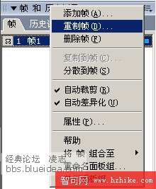 8、選擇幀面板右上角的菜單按鈕,選取重制幀命令: