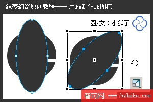 5、繪制一個橢圓,選取縮放工具,將其旋轉約45度。