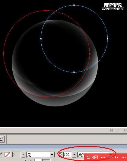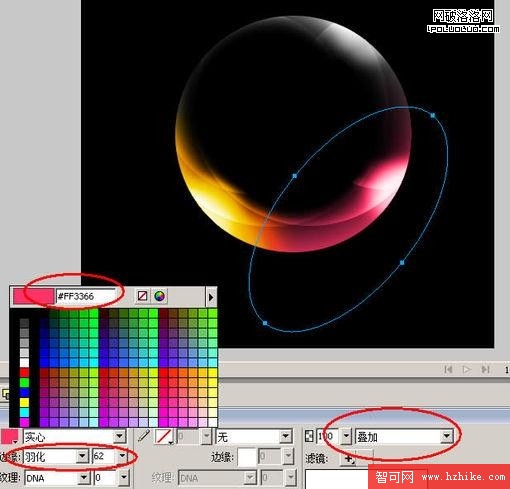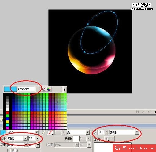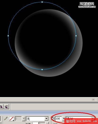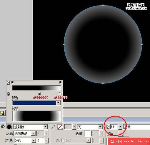 啟動Fireworks -> 將背景調成“黑色”,在畫布中畫一個圓。