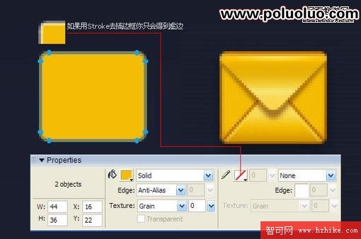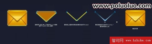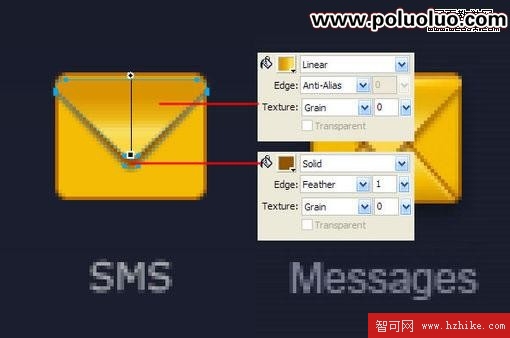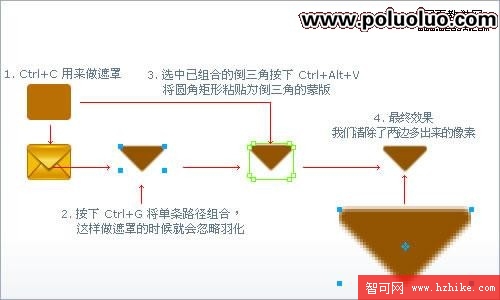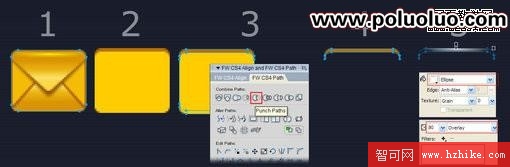 接下來為信封的上下三角形加單像素高光,因為之前已經反復講過路徑相減(Punch Path,您可以在Modify – Combine Paths菜單下找到它)的操作,這裡不再作說明,如下圖: