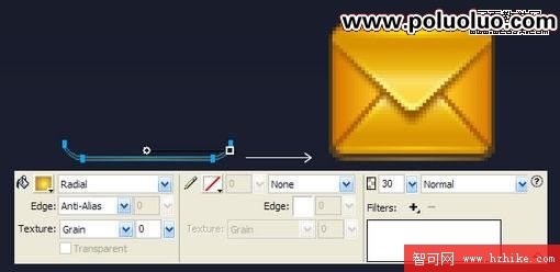 我們回到深色背景,有沒有感覺到信封的兩邊顯得有點平?我們用一個Bars或者Radial填充來加點效果上去。