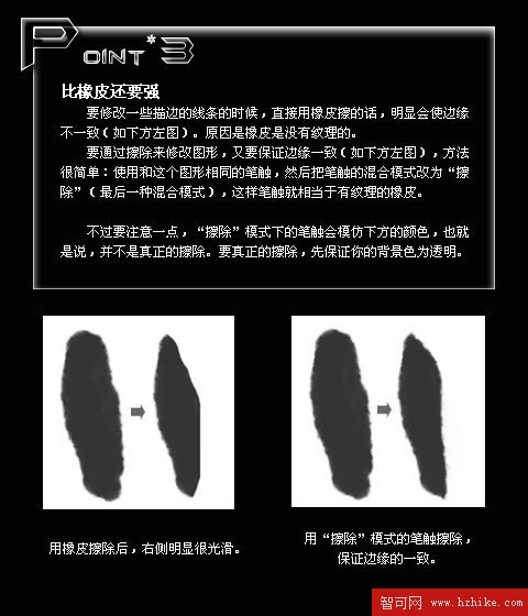 要修改一些描邊的線條的時候,直接用橡皮擦的話,明顯會使邊緣不一致(如下方左圖)。原因是橡皮是沒有紋理的。
