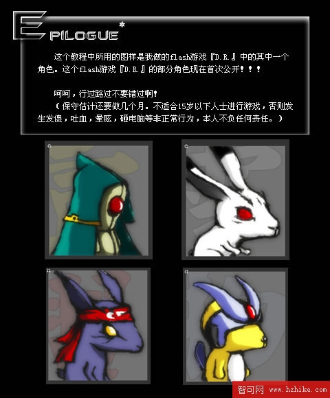 這個教程中所用的圖樣是我做的flash游戲『D.R.』中的其中一個角色。這個Flash游戲『D.R.』的部分角色現在首次公開!!!