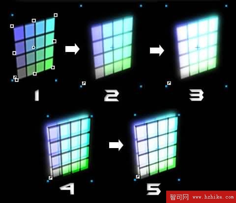 總結:本例使用了Fireworks的各種混合模式和高斯模糊濾鏡營造光影效果,使用”扭曲”工具制造投影效果。