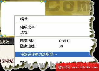 4、在圓角矩形上點擊鼠標右鍵,選擇“將路徑轉換為選取框”,相關截圖如下所示: