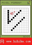 選取鉛筆工具並選擇1像素的筆刷,以一個像素的方式斜向排列,此類線條掌握比較簡單,較常用於平面物體以及建築斜面的繪制。