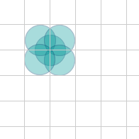 4、選定圓形,按下Ctrl+C(拷貝)後再按下Ctrl+V(粘貼),然後按住Alt鍵,按照圓形所在的網格區域四周直接拖動圓形形成圍繞。見圖2所示。