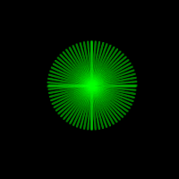 4、讓我們來做最後一次示范!這一次用線條來進行演示。選擇Line Tool(直線工具),繪制一條豎直的線條,寬度為2像素。然後按照我們上述的方法對線條進行復制,每復制完成一次,便應用數字轉換命令增加其角度5度,直至達到180度。效果見圖6。應用效果見圖7-8。
