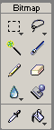 位圖工具中除了鉛筆工具和畫筆工具屬於從以前的筆刷工具分化出來,專門對應了位圖自由畫線外,其余的基本用法和以前一模一樣,所以這裡也就都不敷述了。