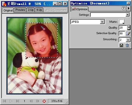 1. 首先打開一個JPEG圖像,在Optimize面板中指定整個圖像的壓縮級別。如圖: