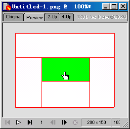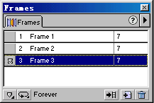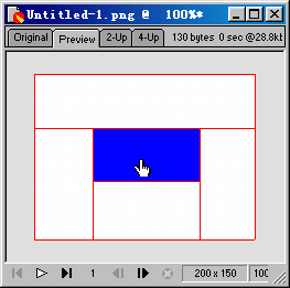 至此,創建圖像交換的第一階段—建立切片、翻轉圖像和用來存放它們的幀的工作就完成了。其結果是在切片下的第一幀中放置了一個紅色的矩形,在切片下的第二幀中放置了一個藍色的矩形,在切片下的第三幀中放置了一個綠色的矩形。