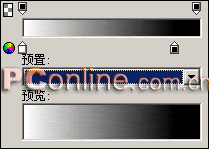 ????3. 利用圓形工具,在場景中繪制一個寬為99,高為72的橢圓,將填充色屬性改為線形,漸變屬性如下圖所示。