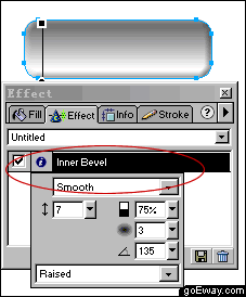 三、設置完漸變色後,打開effect效果面板,類型為inner bevel,在其下拉菜單中選擇smooth,深度選為7,其他的按默認的設置,這樣基本的框框就做好了,看下圖所示。
