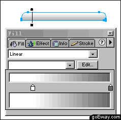 二、選擇這個圓角矩形,打開fill面板,填充類型選為linear,打開edit按鈕編輯漸變色帶,如下圖所示,色帶有白和黑組成。