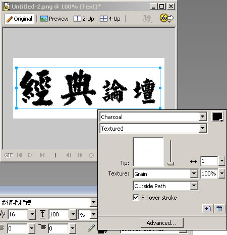 發現Fireworks是可以達成這樣的文字邊緣毛糙的效果