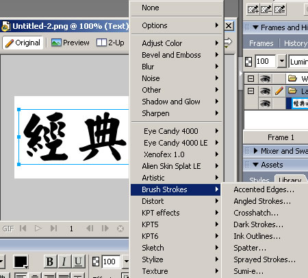 如果你的Fireworks掛上了Photoshop的濾鏡(5.5以下版本)