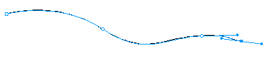 設定筆觸為黑色。使用鋼筆工具,在畫布的左部點出一個點,在畫布的中間再次點擊並拖動鼠標完成向上凸的一段曲線,松開鼠標。然後在畫布的右部點擊並拖動鼠標,完成向下凹的一段曲線。最後在右側再點一下。整條曲線的繪制過程以及最終效果如下所示: