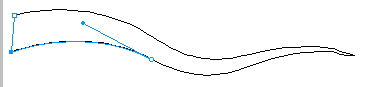 現在把這兩條曲線最左邊連接組合成封閉路徑。也可以用鋼筆工具實現:首先點擊位置靠上曲線的左邊的尾點,然後點擊位置靠下曲線的左邊的尾點。Fireworks會自動把他們連接成封閉路徑。如下
