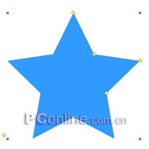 4、選中1號控制點,向下方拖動,本步操作的目的是為了減少星形對象的角的數量,只需要將5角星變成4角星即可了,如下圖所示: