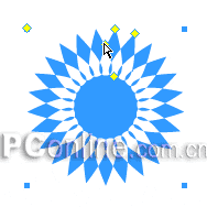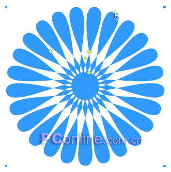 後記:如果對生成的“花朵”形狀不滿意,你仍然可以通過調整星形對象的各個控制調節點來對“花朵”的形狀做變形處理,我們剛剛只是使用到了1號、2號、5號控制調整點,你可以使用3號、4號控制點來對“花朵”做進一步的變形處理。下面的幾個圖形效果就是通過對各個調整點的不規則的調整而得出來的,具體的操作我也不好說清了,因為每個人的旋轉角度,縮放力度的不同,產生的效果自然也會不一樣的,快快動手,開放屬於自己的“花朵”吧!