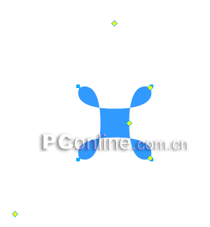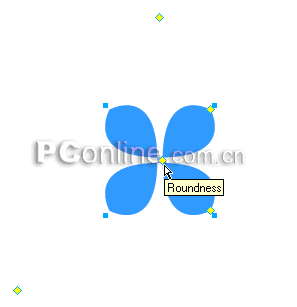 5、選中2號點,用鼠標向圖形中心方向拖動該控制點,直至出現如下圖所示圖形: