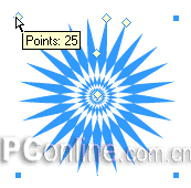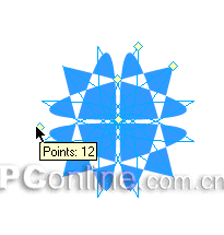 8、呵呵,是不是奇妙的圖形效果已經展現在我們面前了?別急,接下來的操作產生的效果會更加讓你目瞪口呆。還是選中1號調整控制點,這次我們向上方拖動鼠標,增加星形對象的角數,如下圖操作演示: