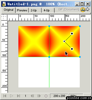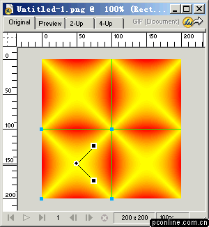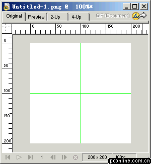 1、打開FWMX,新建一個大小為200*200,背景為白色的文件。進入編輯區,如果編輯區的上側和左側沒有標尺的話,首先執行菜單命令"View / Rulers"使得標尺欄為可見,為了操作方便,接下來執行菜單命令"View / Guides / Show Guides"、"VIEw / Guides / Snap to Guides"使得輔助線為可見並且打開輔助線的自動吸附功能,這樣,我們就將最基礎的前期工作准備好了。