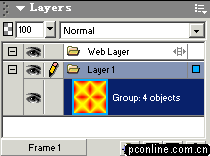 7、執行快捷鍵"Ctrl+A",同時選定編輯區的四個對象,然後快捷鍵"Ctrl+G",將四個對象組合成組,此刻層面板會如下圖所示: