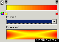 ,單擊填充顏色井,在彈出的顏色設定框中進行設定,本例是將左側的顏色塊設為了黃色,右側的顏色塊設為了紅色。當然,您可以根據實際情況進行任意調整。本例具體設置情況如下圖所示: