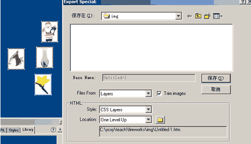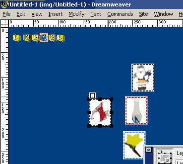 8、Trim lmage選項在dreamweaver打開後的情形,每個圖片占單獨的一層。CSS圖層的深度由FW中圖層的順序決定。