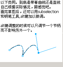 調整好曲線找節點3的時候,這時候會帶著一個曲線的鋼筆走.