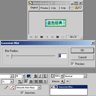文字動態模糊的第三種方法,是運用模糊濾鏡,透明迭加和字體偏移,