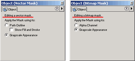 在對象面版中我們可以看到當前遮罩的類型,不同類型的遮罩屬性也不一樣,在下面的圖中我們可以看到一個是矢量(vector)類型的遮罩,一個是位圖(bitmap)類型的遮罩。