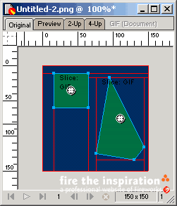 你可能注意到了,當使用不規則形狀做切割時,Fireworks會沿著這個多邊形的最邊緣建立一個矩形,這是因為表格和圖片只接受矩形這種形狀,輸出後的結果將會被處理成在一張矩形的圖片上有一個多邊形的熱區這種形式。