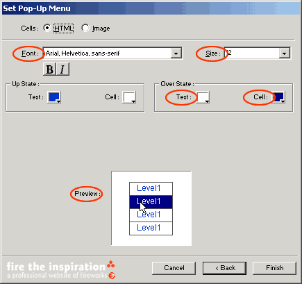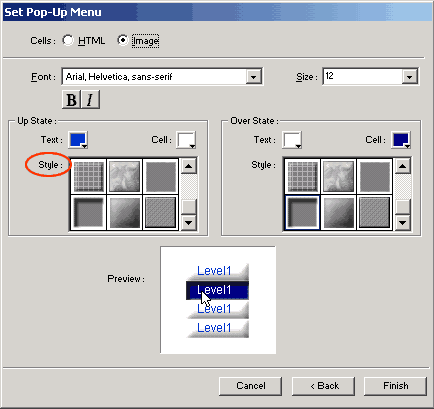 完成之後按Next進入下一個窗口,設置彈出菜單的樣式。你可以選擇是用Html方式還是圖象(Image)方式來建立菜單,在這裡我們先選擇Html方式。