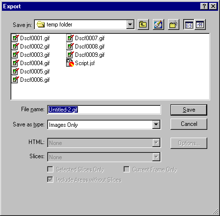將一副大的圖像使用切割工具分成一個個小的切片以後,你就要把這些切片輸出。