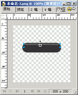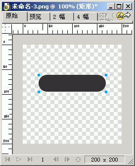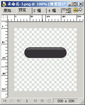 2.在透明畫布上,使用圓角矩形工具畫一個兩頭半圓的按鈕,顏色為黑色。制作方法見《制作兩頭半圓的矩形》一文。